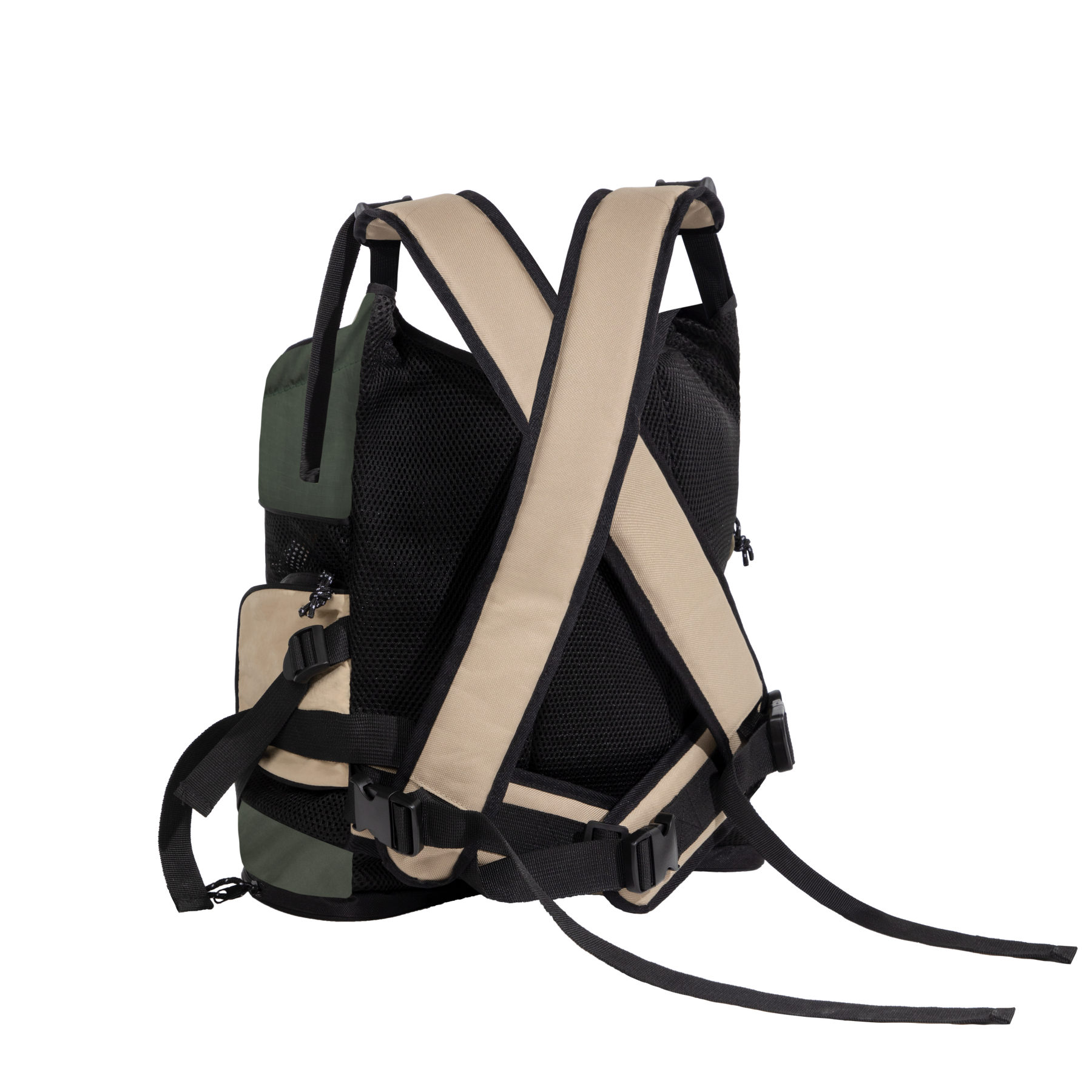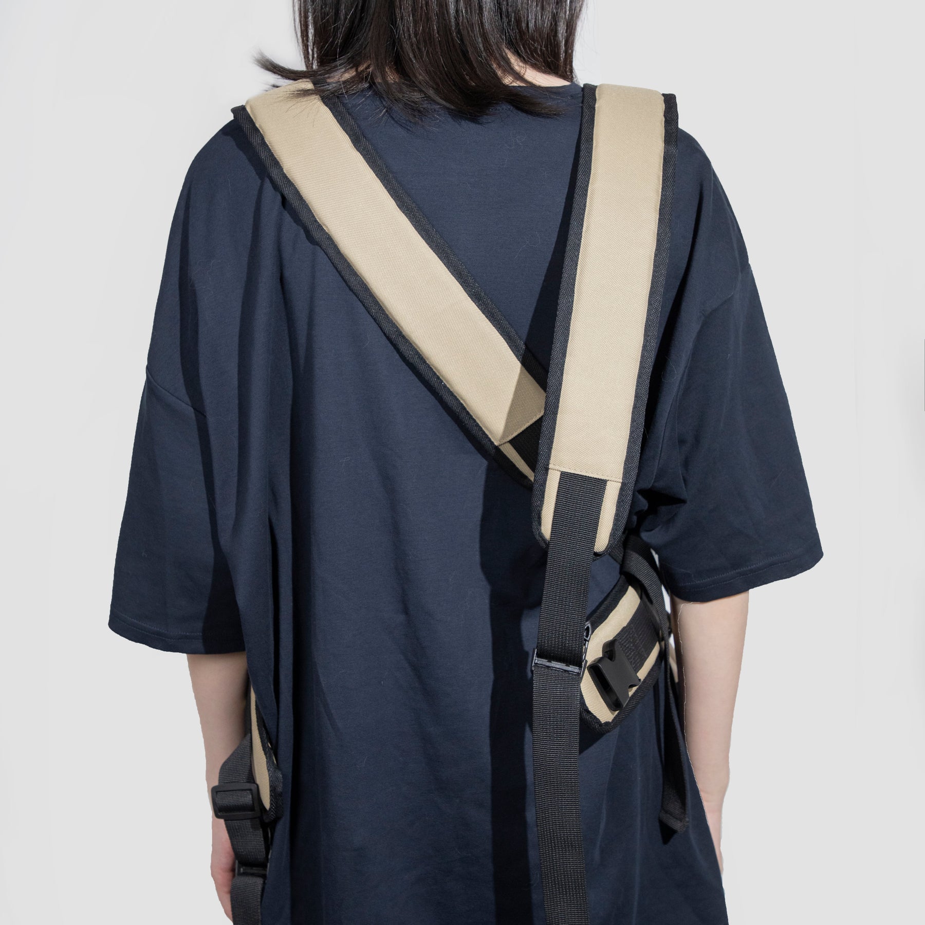 - Wide, adjustable shoulder straps with a cross-back setup and buckle hardware for a more secure fit.