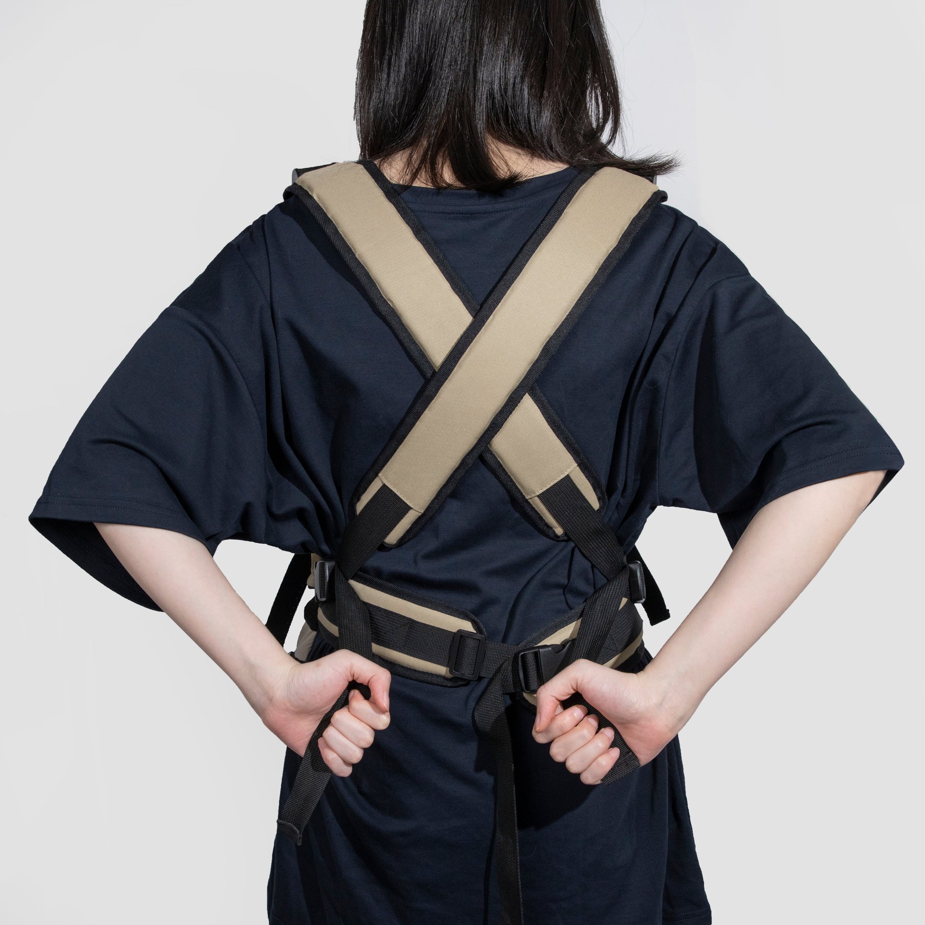- Structured body with a firm-looking round base, helping the carrier keep its shape while worn.